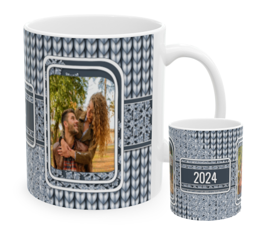 Marble Design Photo Wrap Mug - Custom Text - 2 Custom Photos