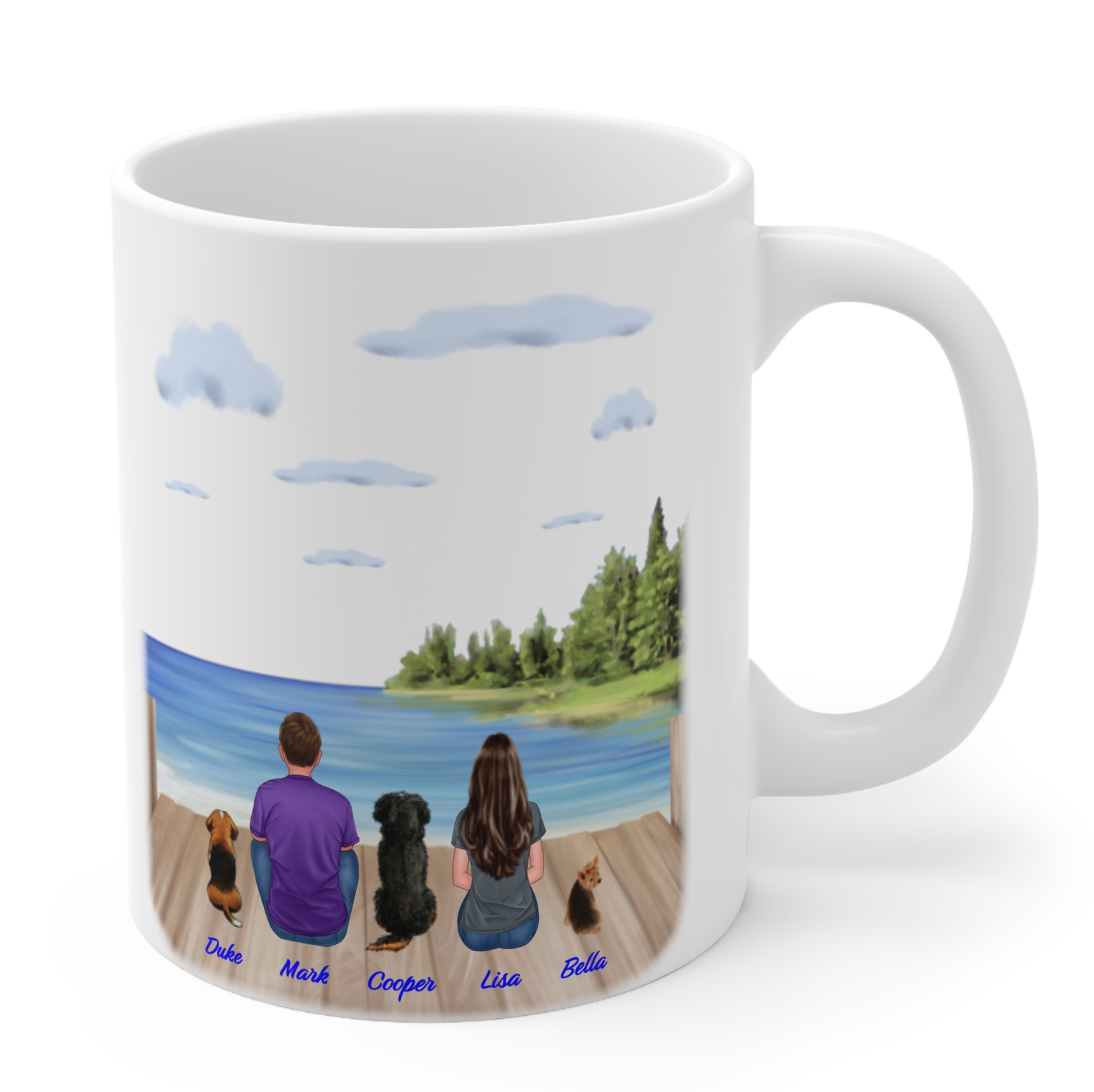A great gift idea for anyone. Give them a lasting reminder of those closest to them and their beloved pets with this beautiful lake view background scene.